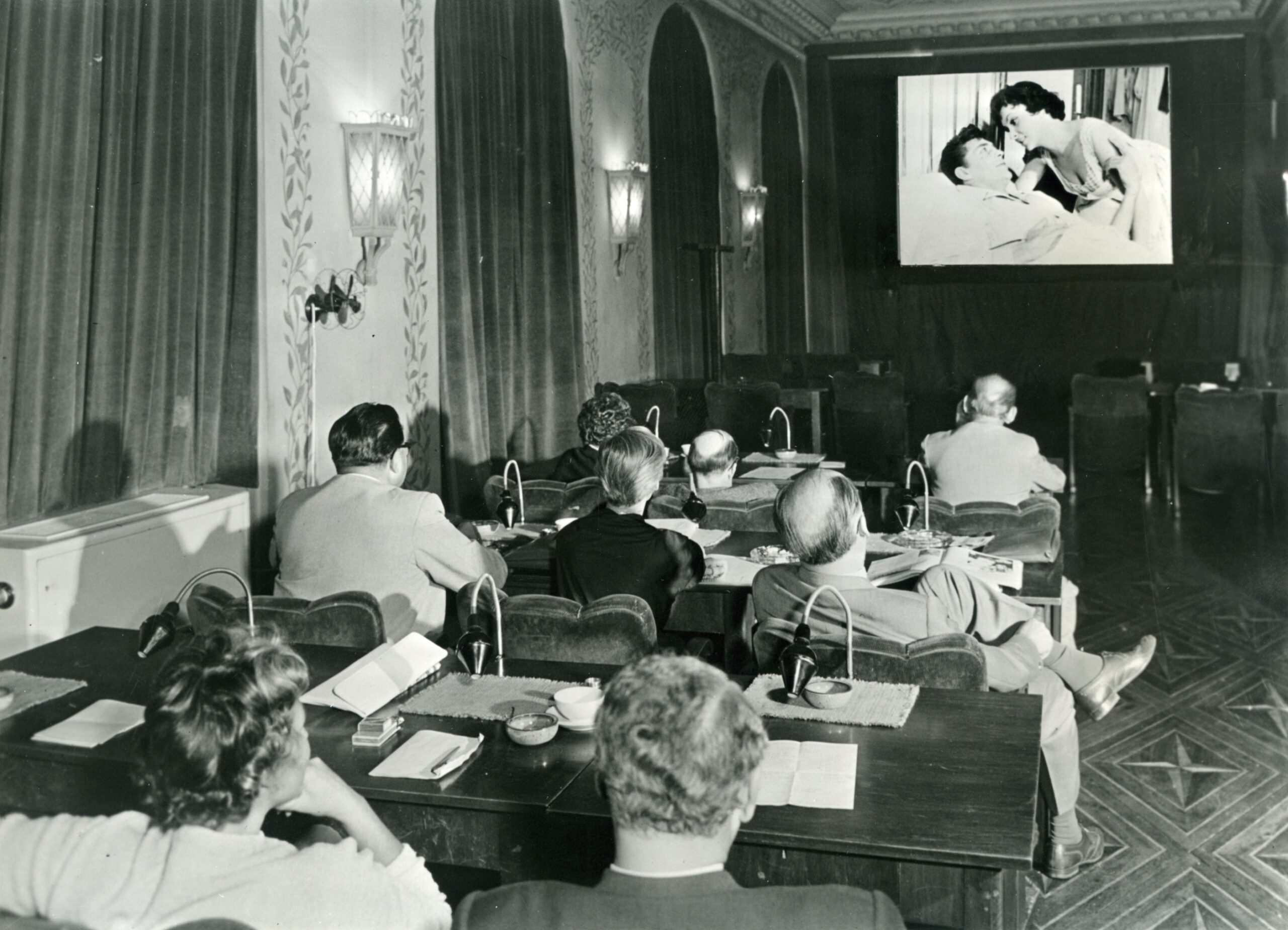 Das Gremium, das im Sommer 1949 erstmals zusammentrat, bestand aus Vertreter:innen der Filmwirtschaft, der Länder, der Katholischen Jugend Bayerns und der Kirchen. Als ersten Film prüfte die FSK am 18. Juli 1949 im relativ unzerstört gebliebenen Westflügel des Biebricher Schlosses in Wiesbaden den Überläufer „Intimitäten“ von Paul Martin. Noch in der NS-Zeit hergestellt und 1944 von der NS-Filmprüfstelle verboten, wurde er 1947 von der Alliierten Militärzensur freigegeben und lag nun der neu gegründeten FSK zur Prüfung vor. Das Ergebnis: Freigegeben zur öffentlichen Vorführung ab 16 Jahren ohne Schnitt, nicht geeignet für die stillen Feiertage. Die ersten Prüfungen galten zunächst noch als Probelauf. Da es noch kein Jugendschutzgesetz gab, spielte die Jugendfreigabe zunächst noch eine untergeordnete Rolle. Es galt vor allem zu prüfen, ob von Filmen eine nazistische, staatsfeindliche oder militaristische Tendenz ausging und ob sie „entsittlicht“ wirkten. Am 28. September 1949 übertrugen schließlich die Alliierten Militärbehörden offiziell ihre Kontrollbefugnis auf die nunmehr auch formell etablierte FSK.